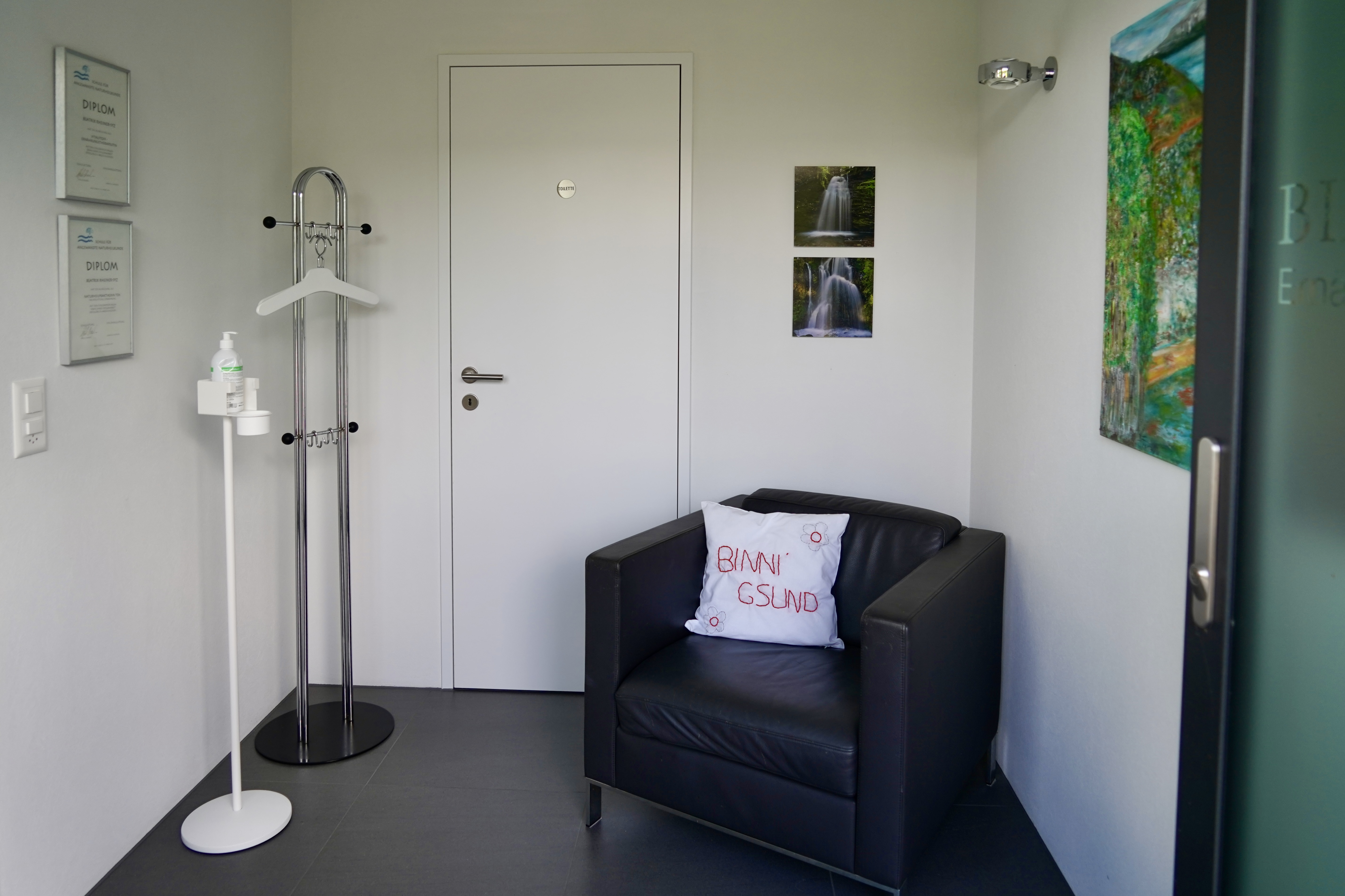 Die Praxis liegt in einem ruhigen Wohnquartier mit guter Anbindung an den öffentlichen Verkehr. Ein Parkplatz ist direkt vor der Haustür. Die Praxis verfügt über einen Beratungsraum und eine separate Toilette und ist rollstuhlgängig.