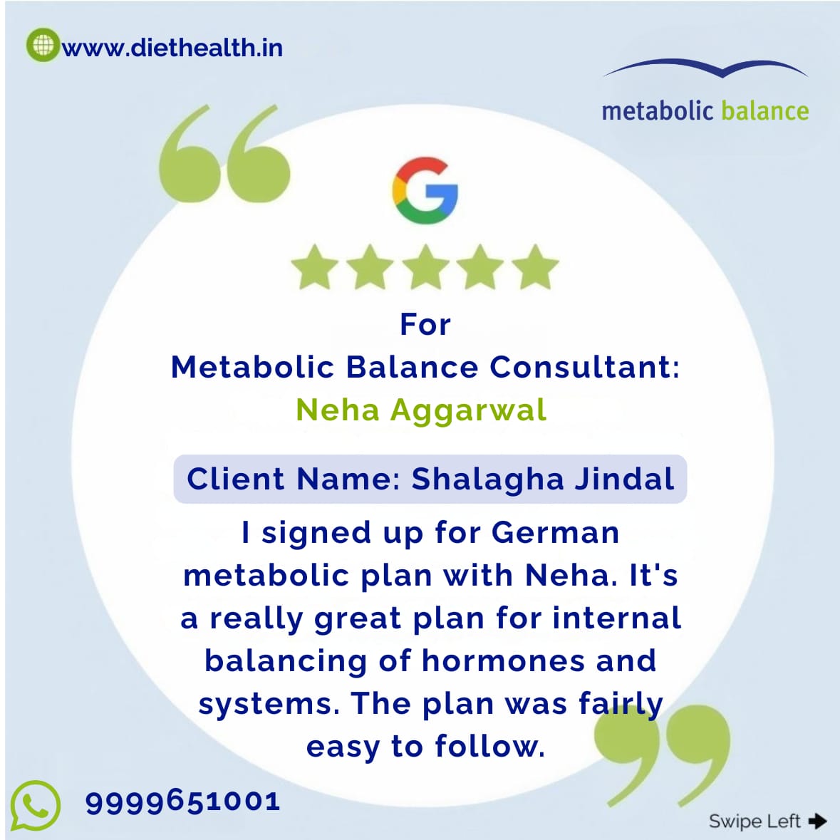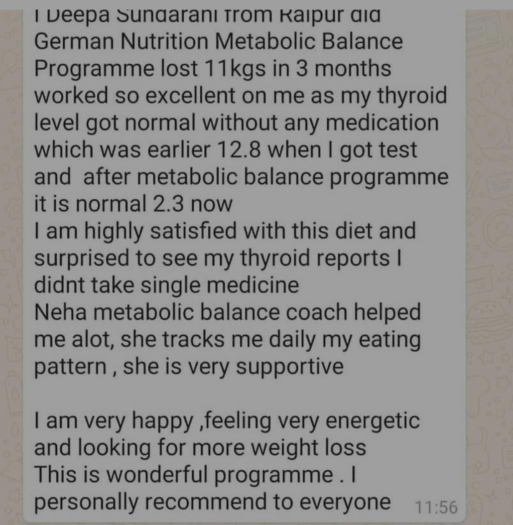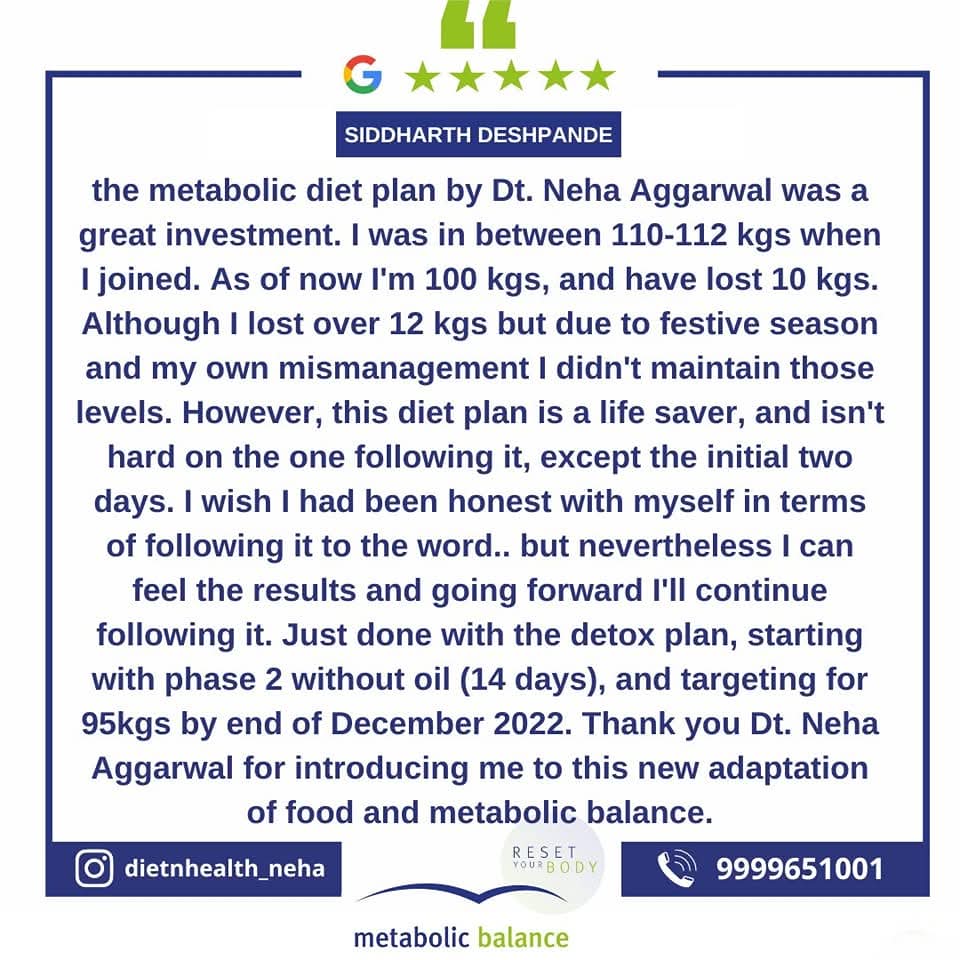 Neha Aggarwal has been practicing as a therapeutic consultant dietician for over 13 years and as a Certified Metabolic Balance® Coach since 2019. With six years of dedicated experience in Metabolic Balance, she has consistently delivered exceptional results to her clients—helping them achieve healthy weight loss, reverse metabolic syndromes, and regain long-term wellness through personalized nutrition.